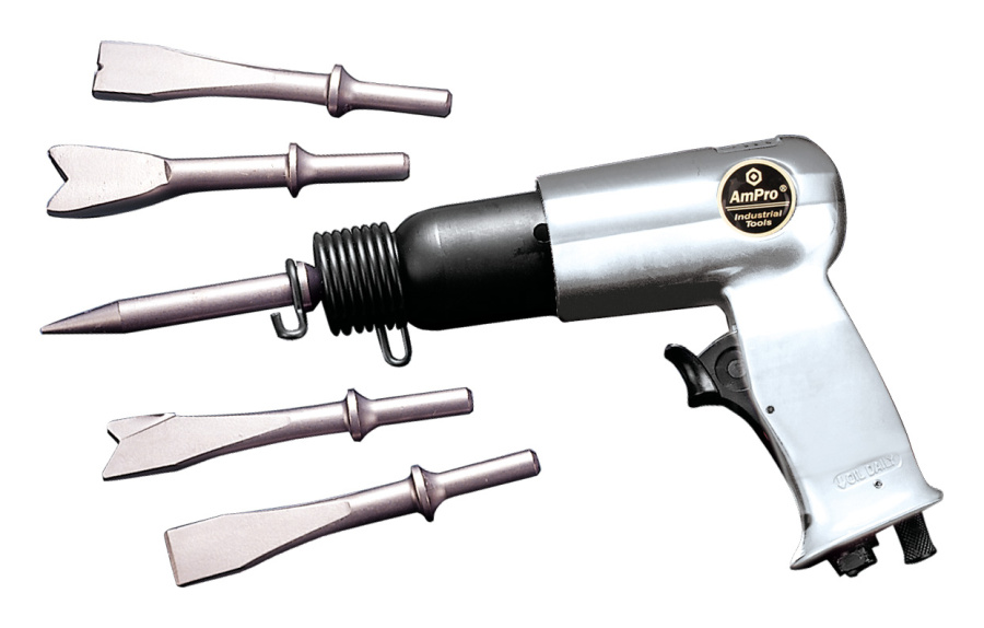 Приобрести A3101 Пневмозубило с набором зубил из 5 шт от компании AmPro (Тайвань) из раздела Пневматический инструмент по цене 4 847 рублей.