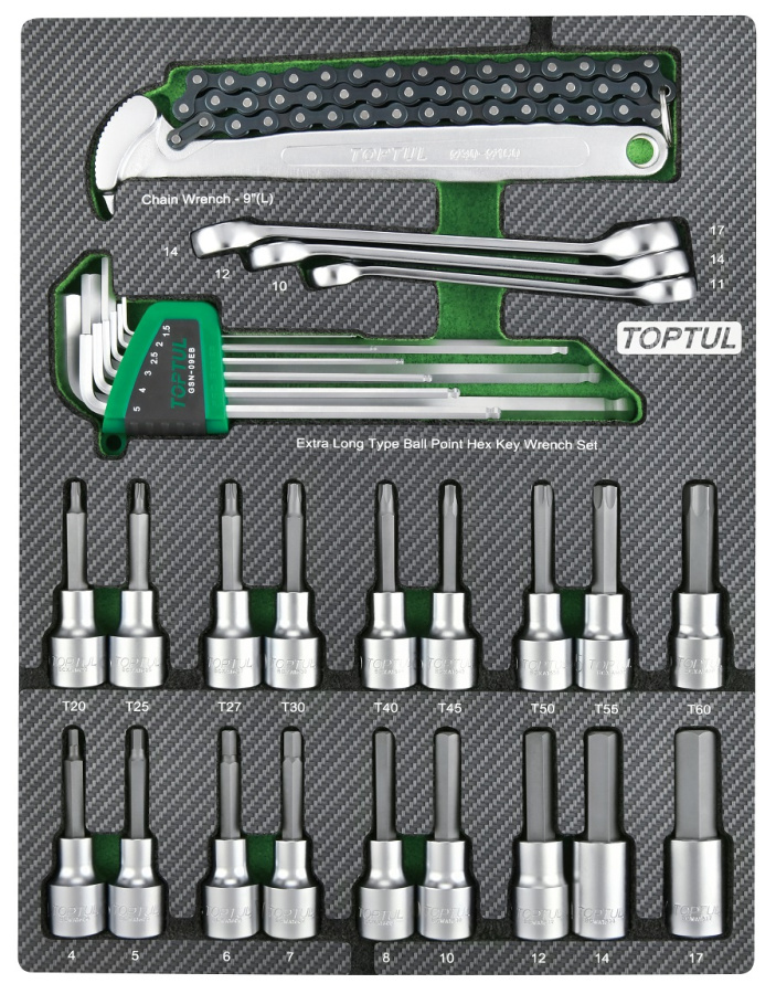 Набор торцевых насадок, шестигранники Г-образные и разрезные ключи, 31 пр. в мягком ложементе TOPTUL GEB3109 купить в Брянске и других городах России