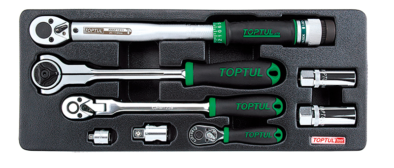 Набор трещоток 1/4", 3/8", 1/2", динамометрический ключ 3/8" 20-110 Нм, переходники и свечные головки, 8 предметов в ложементе (B) TOPTUL купить в Брянске и других городах России