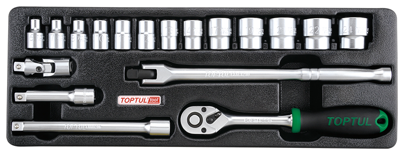 Приобрести Набор головок и аксессуаров 3/8" 6-24 мм, 18 предметов в ложементе (A) TOPTUL GCAT1808 от компании Toptul (Тайвань) из раздела Торцевые головки по цене 5 725 рублей.
