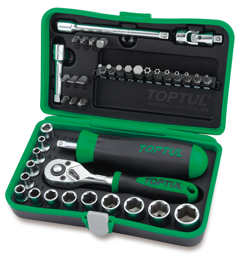 Набор бит и головок 1/4" 6-гранных 4-14 мм, 41 предмет TOPTUL